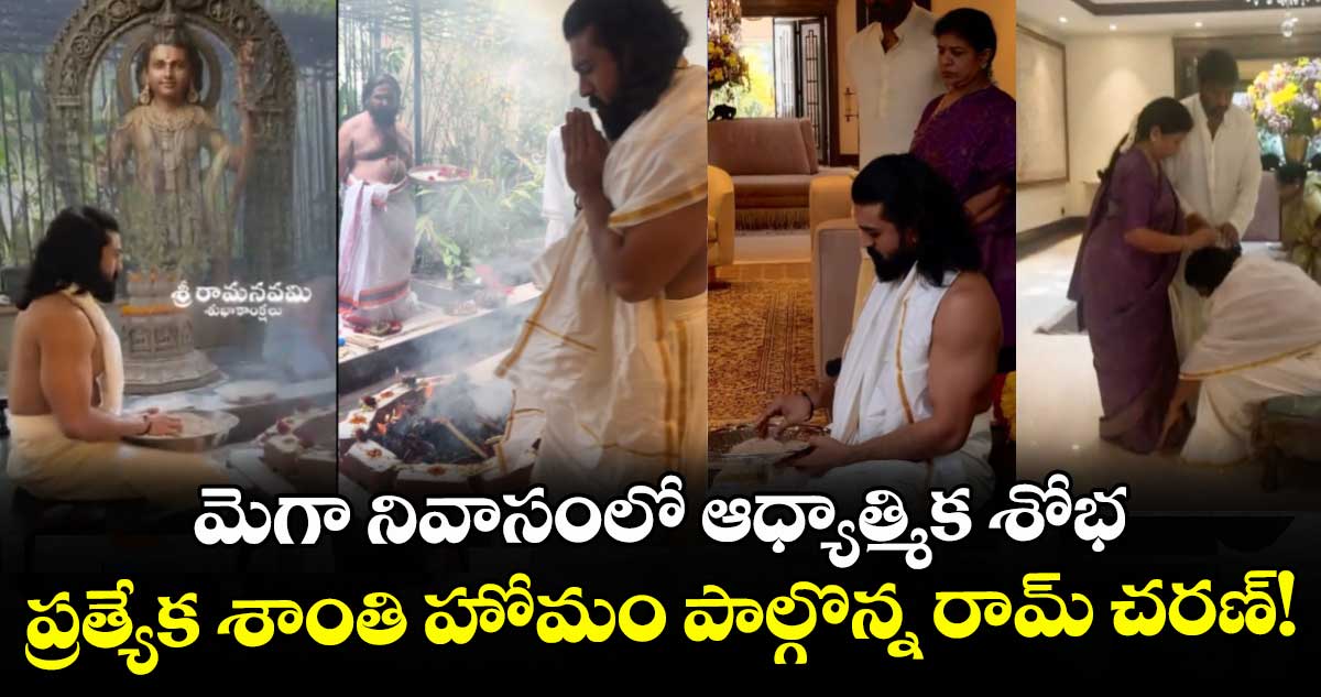 ఉదయాన్నే మెగా నివాసంలో ఆధ్యాత్మిక వాతావరణం నెలకొంది. చరణ్ పుట్టినరోజు పురస్కరించుకుని ఇంట్లోనే ప్రత్యేకంగా శాంతి హోమం నిర్వహించారు. సంప్రదాయబద్ధంగా పంచెకట్టులో కనిపించిన చరణ్, హోమం అనంతరం తల్లిదండ్రుల పాదాలకు నమస్కరించి ఆశీర్వాదం తీసుకున్నారు. దీనికి సంబంధించిన వీడియోలు ప్రస్తుతం నెట్టింట వైరల్గా మారి, మెగా ఫ్యాన్స్ను ఆకట్టుకుంటున్నాయి.