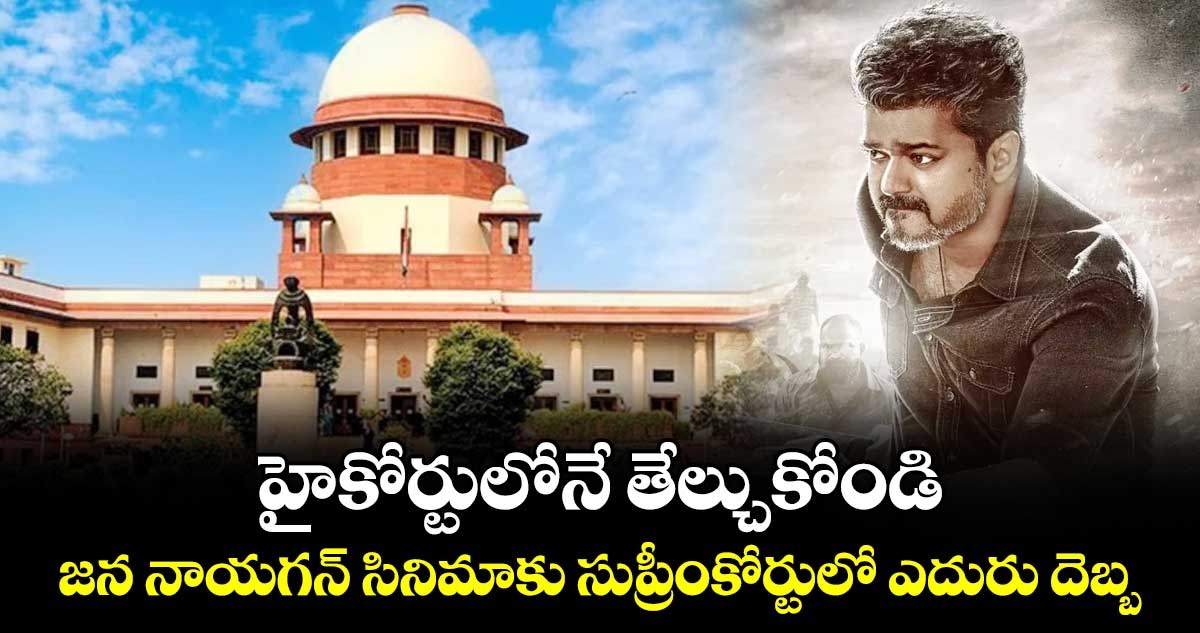 న్యూఢిల్లీ: విజయ్ దళపతి నటించిన జన నాయగన్ మూవీకి సుప్రీం కోర్టులో నిరాశ ఎదురైంది. ఈ సినిమా రిలీజ్ వ్యవహరంలో జోక్యం చేసుకునేందుకు దేశ అత్యున్నత న్యాయస్థానం నిరాకరించింది. జన నాయగన్ మూవీకి సెన్సార్ సర్టిఫికేట్ ఇచ్చేలా సీబీఎఫ్సీకి ఆదేశాలు ఇచ్చేందుకు సుప్రీం కోర్టు అంగీకరించలేదు. మద్రాస్ హైకోర్ట్ డివిజన్ బెంచ్లోనే తేల్చుకోవాలని మూవీ యూనిట్కు సూచించింది. 2026, జనవరి 20వ తేదీలోగా పిటిషన్పై నిర్ణయం తీసుకోవాలని హైకోర్టుకు సూచించింది సుప్రీంకోర్టు. ఈ పిటిషన్పై విచారణ పూర్తి అయ్యే వరకు సర్టిఫికెట్ను నిలిపివేయాలని సీబీఎఫ్సీని ఆదేశించింది.