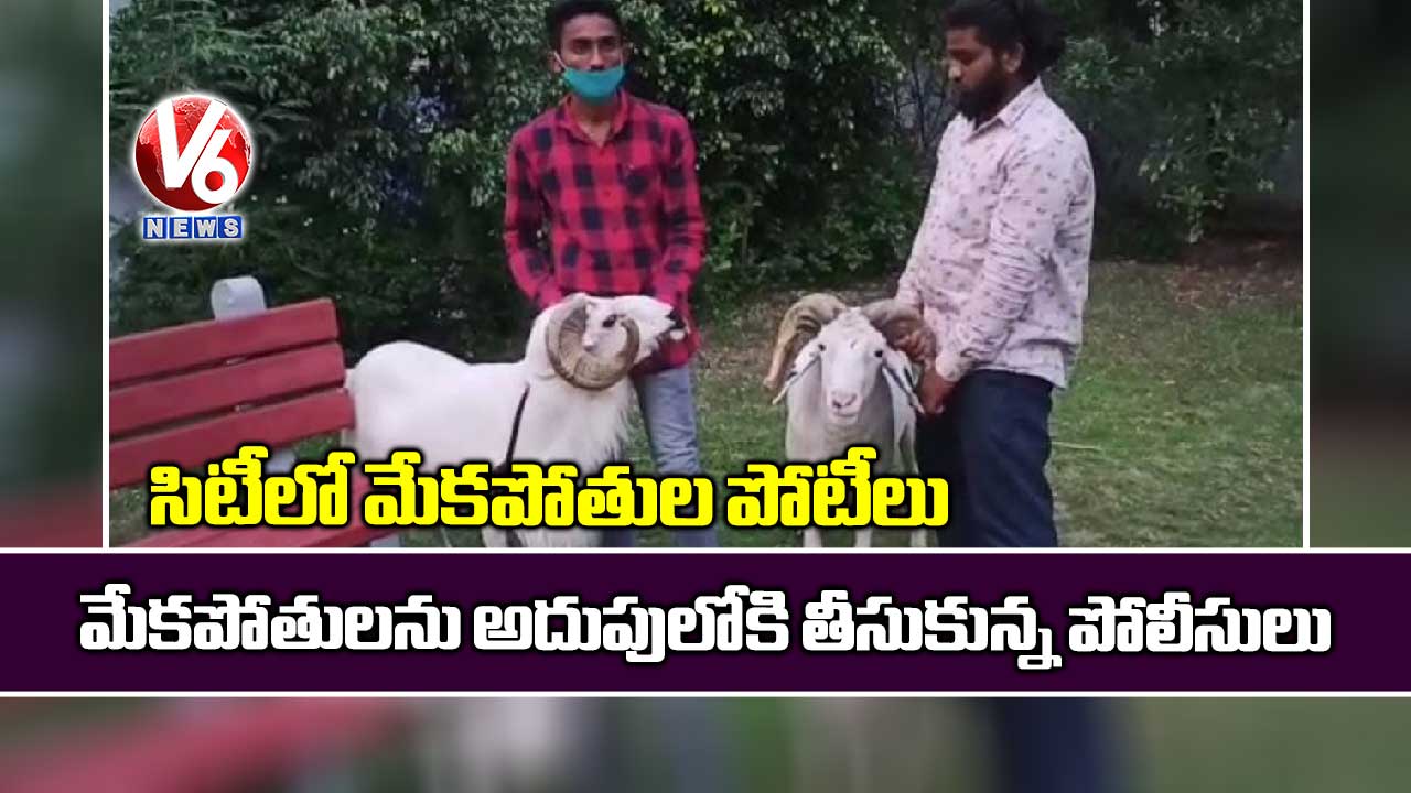 హైదరాబాద్లో కొంతమంది వ్యక్తులు గుట్టుచప్పుడు కాకుండా మేకపోతుల పోటీలు నిర్వహిస్తున్నారు. బంజారాహిల్స్ పీఎస్ పరిధిలోని హకీమ్ బాబా దర్గా ప్రాంతంలో ఈ పోటీలు నడుస్తున్నాయి. సమాచారం మేరకు ఈ పోటీలపై పోలీసులు దాడి చేసి.. నిర్వాహకులను అదుపులోకి తీసుకున్నారు. అంతేకాకుండా.. మల్లిక్, వీర అనే రెండు బలిష్టంగా ఉన్న మేకపోతులను కూడా బంజారాహిల్స్ పీఎస్కి తరలించారు. ఈ పోటీలకు సంబంధించి 11 మందిని అరెస్ట్ చేశారు. వారి వద్ద నుంచి రూ. 61,800 రూపాయల నగదు సీజ్ చేశారు. ఎస్ఆర్ నగర్కి చెందిన ఓ రౌడీషీటర్ ఈ పోటీలు నిర్వహిస్తున్నాడని పోలీసులు తెలిపారు. ప్రస్తుతం ఆ రౌడీషీటర్ పరారీలో ఉన్నాడని.. అతన్ని పట్టుకునేందుకు గాలింపు చేపడుతున్నామని పోలీసులు తెలిపారు.