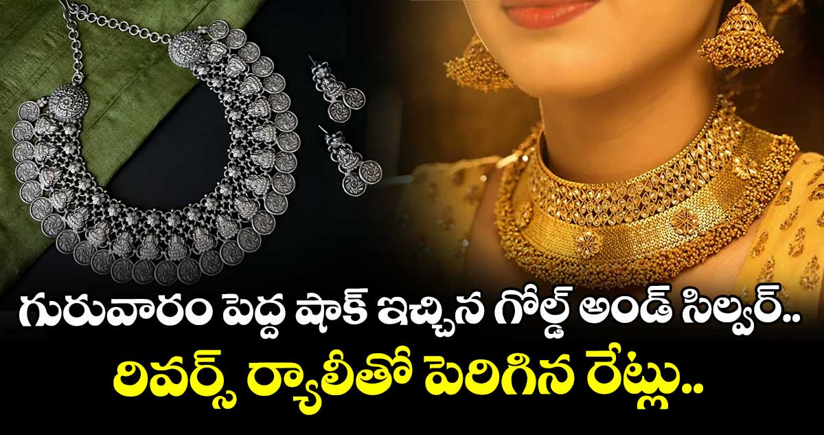 ఈ వారం ప్రారంభం నుంచి వరుసగా తగ్గుతూ వస్తున్న గోల్డ్ అండ్ సిల్వర్ రేట్లు గురువారం ఒక్కసారిగా తిరిగి పెరగటం స్టార్ట్ చేశాయి. దీంతో ఇంకా రేట్లు తగ్గుతాయ్ అని వేచి చూసే ధోరణిలో ఉన్న ఇన్వెస్టర్లకు పెద్ద షాక్ తగిలింది. ఈ క్రమంలో షాపింగ్ చేయాలనుకుంటున్న ప్రజలు, ఇన్వెస్టర్లు తాజా రేట్లను పరిశీలించి నిర్ణయం తీసుకోవటం మంచిది.
