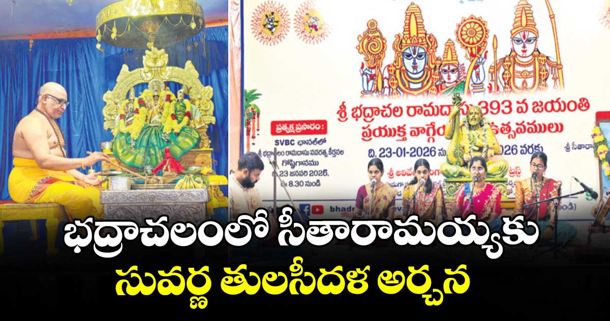 భద్రాచలం, వెలుగు : భద్రాచల సీతారామచంద్రస్వామికి శనివారం సువర్ణ తులసీదళాలతో అర్చన జరిగింది. గోదావరి నుంచి తీర్థబిందెను తెచ్చాక గర్భగుడిలో మూలవరులకు సుప్రభాత సేవను నిర్వహించారు. బాలబోగం నివేదించారు. రామపాదుకలను భద్రుని మండపానికి తీసుకెళ్లి పంచామృతాలతో అభిషేకం చేశారు. భక్తులకు అభిషేక జలాలను పంపిణీ చేశారు. అనంతరం సీతారాముల మూలవరులను సుందరంగా అలంకరించి బంగారు తులసీదళాలతో అర్చనను వేదోక్తంగా చేశారు.