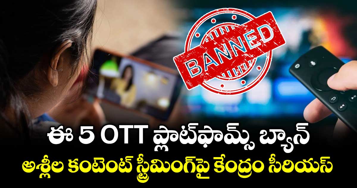 భారత ప్రభుత్వం కీలక నిర్ణయం తీసుకుంది. అశ్లీల కంటెంట్ ప్రసారం చేస్తున్న ఐదు ఓటీటీ ప్లాట్ఫారమ్లపై కొరడా ఝుళిపించింది. మంగళవారం (ఫిబ్రవరి 24, 2026) కేంద్ర సమాచార ప్రసార మంత్రిత్వ శాఖ ఈ నిర్ణయం తీసుకున్నట్లు అధికారులు వెల్లడించారు.