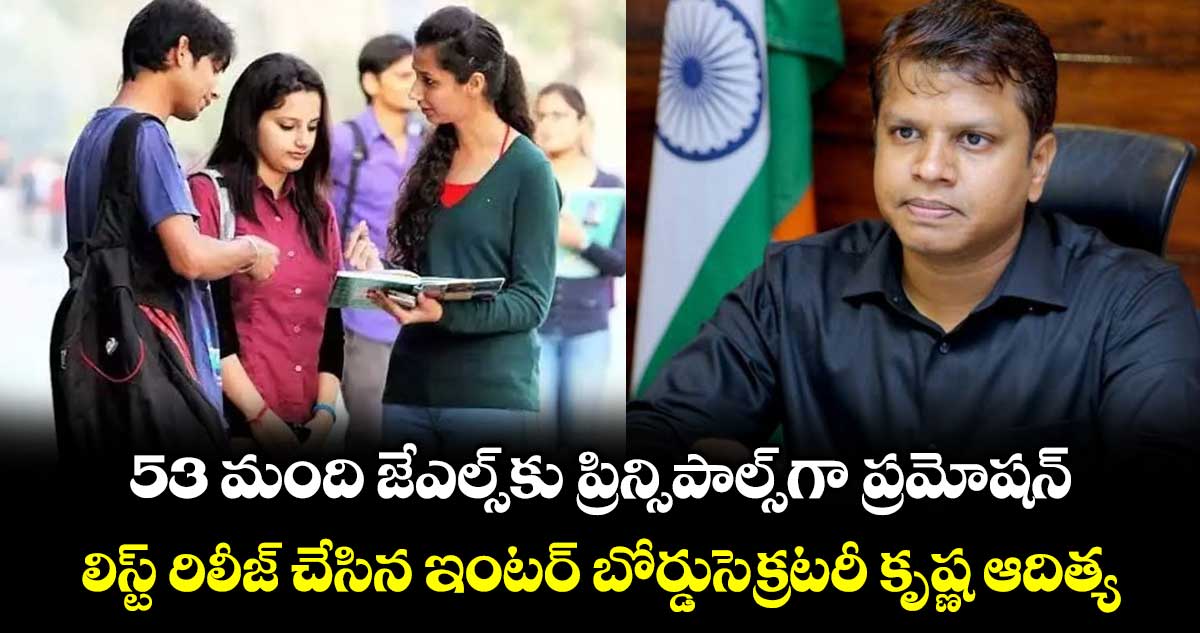హైదరాబాద్, వెలుగు: రాష్ట్రంలోని ప్రభుత్వ జూనియర్ కాలేజీల్లో ఖాళీగా ఉన్న ప్రిన్సిపాల్ పోస్టుల భర్తీకి ఎట్టకేలకు మార్గం సుగమమైంది. 2025–-26 విద్యా సంవత్సరానికి సంబంధించి 53 మంది జూనియర్ లెక్చరర్లకు ప్రిన్సిపాల్స్గా ప్రమోషన్లు ఇస్తూ ఇంటర్ విద్యాశాఖ డైరెక్టర్ కృష్ణ