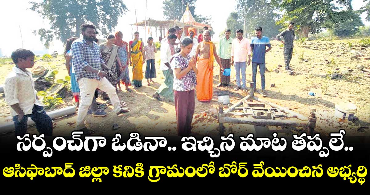 కాగజ్నగర్, వెలుగు : సాధారణంగా గెలిచిన క్యాండిడేట్లే హామీలను నెరవేరుస్తుంటారు. కానీ సర్పంచ్గా పోటీ చేసి ఓడిపోయిన రెండో రోజే.. ఇచ్చిన హామీని నెరవేర్చింది ఓ క్యాండిడేట్. వివరాల్లోకి వెళ్తే.. కుమ్రంభీం ఆసిఫాబాద్ జిల్లా కౌటాల మండలం కనికి గ్రామంలో సర్పంచ్గా పోటీ చేసిన బండి విజయలక్ష్మి ప్రచారంలో భాగంగా.. తనను గెలిపిస్తే గ్రామంలోని హనుమాన్ టెంపుల్ వద్ద బోర్ వేయిస్తానని హామీ ఇచ్చింది.
