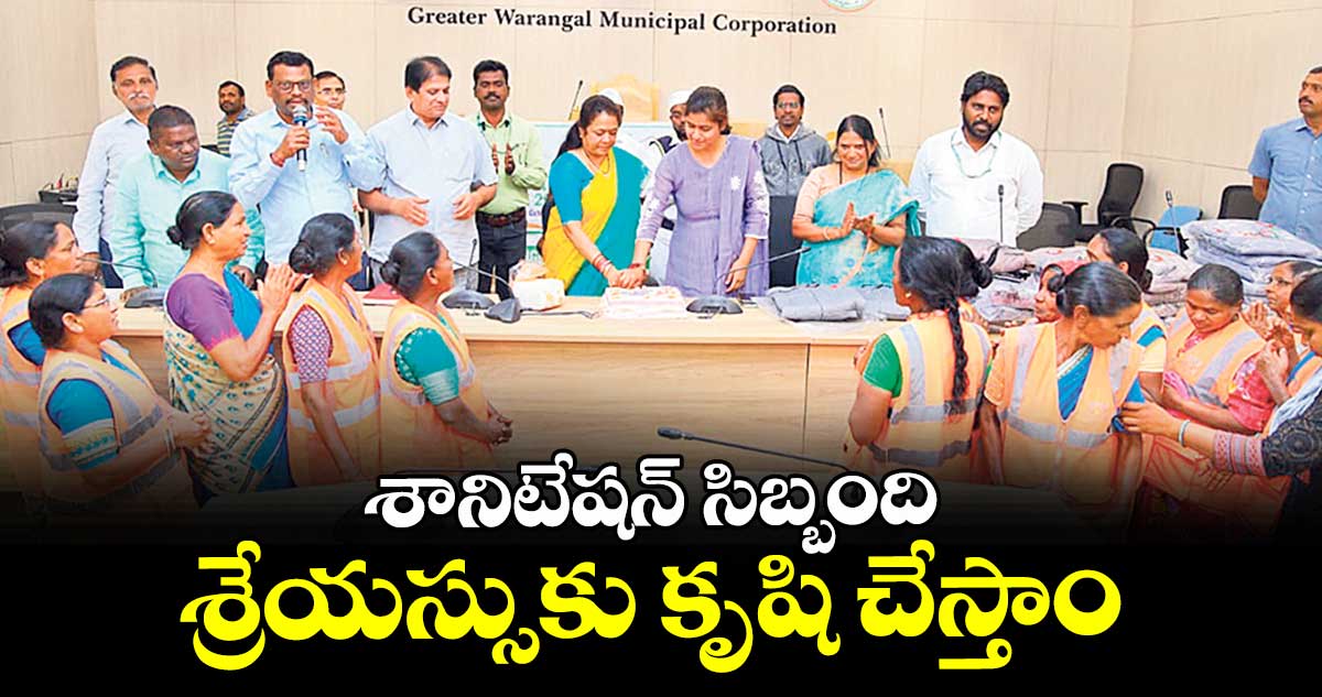 కాశీబుగ్గ(కార్పొరేషన్), వెలుగు: గ్రేటర్ వరంగల్ పరిధిలోని పనిచేసే శానిటేషన్ సిబ్బంది శ్రేయస్సుకు కృషి చేస్తామని బల్దియా మేయర్ సుధారాణి అన్నారు. మంగళవారం బల్దియా హెడ్ ఆఫీస్లో మేయర్ కమిషనర్ చాహత్ బాజ్పాయ్తో కలిసి శానిటేషన్ సిబ్బందికి స్వెట్లర్లను పంపిణీ చేశారు. ఈ సందర్భంగా మేయర్ మాట్లాడుతూ చలి కాలంలో రక్షణ కోసం ప్రతి ఏడాది సిబ్బందికి స్వెట్టర్లను అందజేస్తున్నామన్నారు. వారి ఆరోగ్య పరిరక్షణకు ప్రైవేట్ ఆస్పత్రుల సమన్వయంతో ఆరోగ్య శిబిరాలు ఏర్పాటు చేసి అన్ని రకాల ఆరోగ్య పరీక్షలు నిర్వహించేలా చర్యలు తీసుకుంటున్నామన్నారు.
