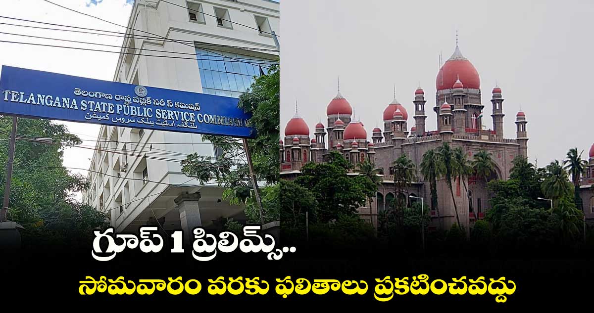 వాదనలు వినిపించేందుకు సోమవారం వరకు TSPSC సమయం కోరగా అప్పటివరకు ఫలితాలు ఇవ్వొద్దని కోర్టు సూచించింది. కాగా 2023 జూన్ 11న గ్రూప్-1 ప్రిలిమినరీ రాత పరీక్ష నిర్వహించిన సంగతి తెలిసిందే. ఈ పరీక్షకు రాష్ట్ర వ్యాప్తంగా 2.33 లక్షల మందికి పైగా హాజరయ్యరు.