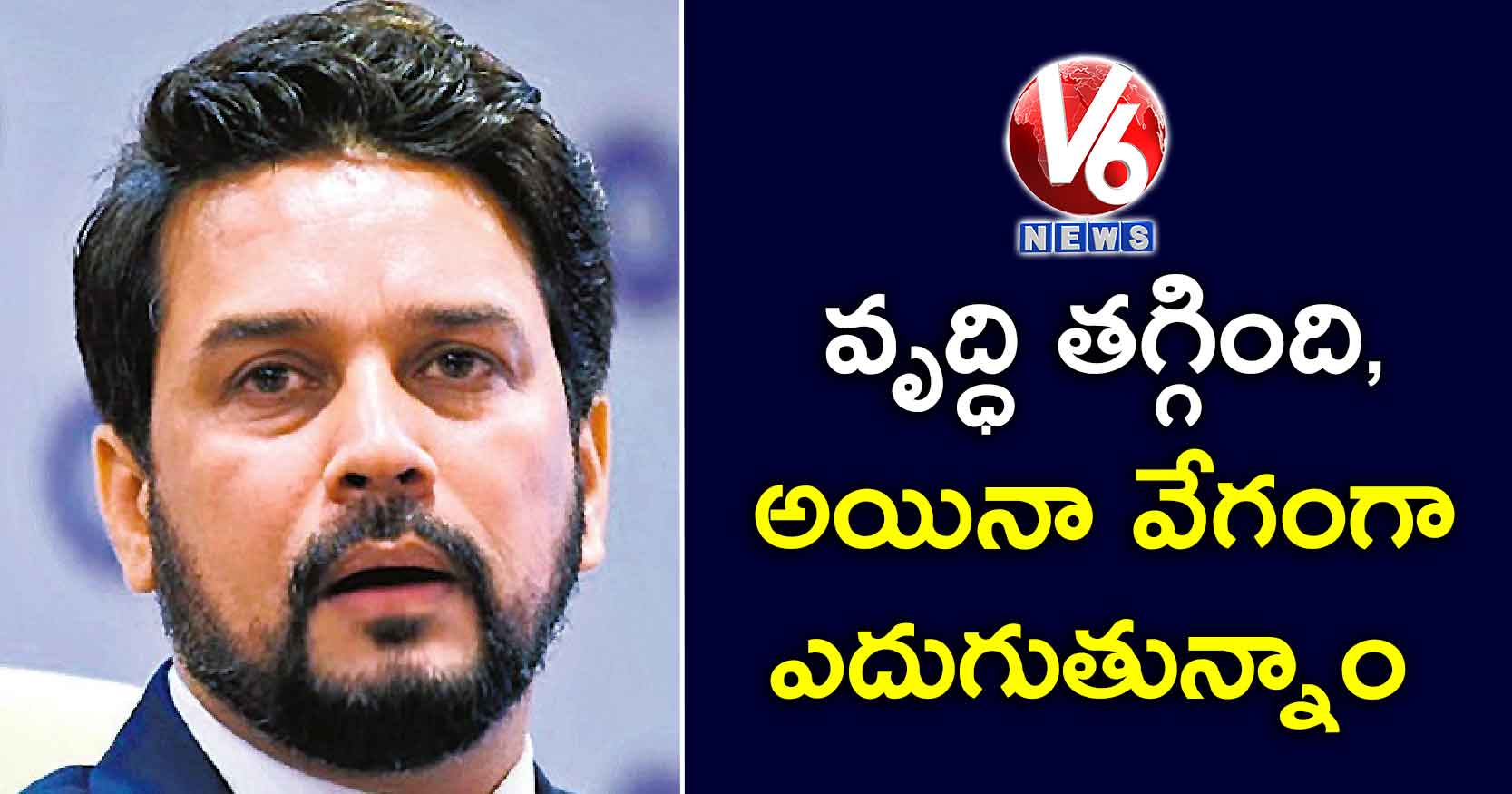 న్యూఢిల్లీ: ఆర్థిక వృద్ధి రేటు తగ్గిందని, కాకపోతే ఇప్పటికీ ప్రపంచంలో అత్యంత వేగంగా ఎదుగుతున్న ఆర్థిక వ్యవస్థ మనదేనని కేంద్ర ఆర్థిక శాఖ సహాయ మంత్రి అనురాగ్ ఠాకూర్ లోక్సభలో చెప్పారు. ఆర్థిక వ్యవస్థను పటిష్ఠపరిచేందుకు కేంద్ర ప్రభుత్వం అనేక చర్యలు తీసుకుంటోందని చెబుతూ, ప్రభుత్వ రంగ బ్యాంకుల మెర్జర్ కూడా అందులో భాగమేనని తెలిపారు. లోక్సభలో క్వశ్చన్ అవర్లో ఈ వివరాలు తెలియచేశారు. పరిశ్రమలకు రాయితీలూ కల్పిస్తున్నామన్నారు. ఆర్థిక వ్యవస్థ కుంటి నడక నడుస్తోందనే ఆమ్ ఆద్మీ పార్టీ ఎంపీ భగవంత్ మాన్ వ్యాఖ్యకు, బదులిస్తూ, వృద్ధి రేటు 5 శాతం తగ్గిపోలేదని అనురాగ్ ఠాకూర్ చెప్పారు. చాలా దేశాలు స్లోడౌన్ ఎదుర్కొంటున్నప్పటికీ, ఇండియా ఇప్పటికీ వేగంగానే వృద్ధి చెందుతోందని తెలిపారు. 2025 నాటికి 5 లక్షల కోట్ల ఎకానమిగా మన దేశం అవతరిస్తుందని పేర్కొన్నారు. పరిశ్రమలకు, విదేశీ ప్రత్యక్ష పెట్టుబడులకు, ఎంఎస్ఎంఈలకు రాయితీలు కల్పిస్తున్నట్లు తెలిపారు. కొన్ని పెద్ద బ్యాంకులతో చాలా చిన్న బ్యాంకులను విలీనం చేశామని, భవిష్యత్లో నాలుగు పటిష్ఠమైన పెద్ద బ్యాంకులు మాత్రమే ఉండాలనేది ప్రభుత్వ లక్ష్యమని చెప్పారు. బ్లాక్మనీకి వ్యతిరేకంగా కఠిన చర్యలు తీసుకుంటున్నామని, పన్ను చెల్లింపుదారుల సంఖ్య రెట్టింపైందని పేర్కొన్నారు.