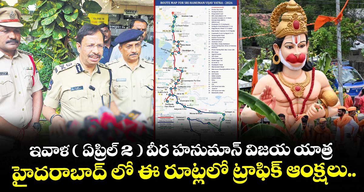 వీర హనుమాన్ విజయ యాత్ర సందర్భంగా పటిష్టమైన ట్రాఫిక్ ఏర్పాట్లు చేపట్టినట్లు హైదరాబాద్ ట్రాఫిక్ జాయింట్ కమిషనర్ జోయల్ డేవిస్ తెలిపారు. గురువారం ఉదయం 9 గంటల నుంచి రాత్రి 8 గంటల వరకు యాత్ర సాగే మార్గాల్లో వాహన రాకపోకలపై ఆంక్షలు ఉంటాయన్నారు. సాయంత్రం 5:30 గంటల ప్రాంతంలో ఈ ర్యాలీ సీటీవో జంక్షన్కు చేరుకునే అవకాశం ఉందని అంచనా వేస్తున్నామన్నారు. పలు చౌరస్తాల వద్ద ట్రాఫిక్ను మళ్లిస్తామన్నారు.
