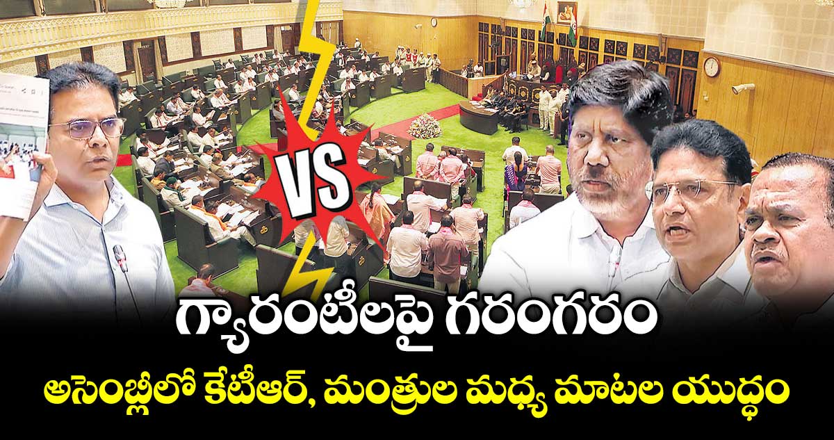 గవర్నర్ ప్రసంగానికి అసలు ఎందుకు.. ఎవరు ధన్యవాదాలు చెప్పాలి? అని కేటీఆర్ ప్రశ్నించారు. 100 రోజులపాటు గ్యారంటీ కార్డులను బీరువాలో భద్రంగా పెట్టుకోవాలని ఎన్నికలకు ముందు భట్టి విక్రమార్క చెప్పారని, కానీ, ఏ వర్గానికీ హామీలు అమలు చేయలేదని కేటీఆర్ అన్నారు. దీంతో మంత్రి కోమటిరెడ్డి వెంకట్రెడ్డి కల్పించుకొని.. అసలు పదేండ్ల బీఆర్ఎస్ పాలనలో ఎన్ని హామీలు అమలు చేశారో చెప్పాలని కేటీఆర్కు సవాల్ విసిరారు. మీ పాలనలో కనీసం ఒక్క రేషన్ కార్డయినా ఇచ్చారా? అని ప్రశ్నించారు.