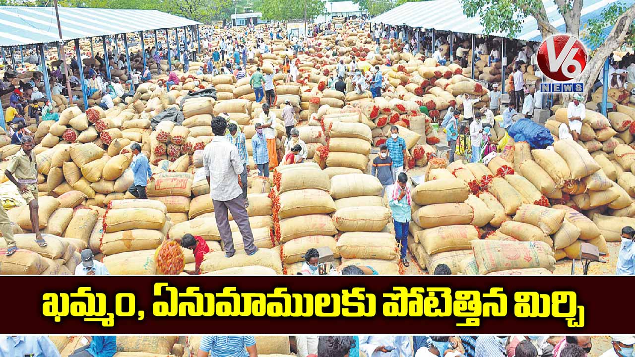 వరంగల్లోని ఏనుమాముల మార్కెట్ ఎర్రబంగారంతో కళకళలాడింది. ఏప్రిల్ 24 నుంచి బంద్ అయిన మార్కెట్ తిరిగి ఓపెన్ కావడంతో రైతులు పెద్ద ఎత్తున మిర్చి తీసుకొచ్చారు. దాదాపు నెల రోజుల పాటు కొనుగోళ్లు సాగకపోవడం.. మిర్చిని ఇంటి వద్ద స్టోర్ చేసుకునే ఫెసిలిటీ లేకపోవడంతో రైతులు తీవ్ర ఇబ్బందులు పడ్డారు. ఇప్పుడు మార్కెట్ ఓపెన్ కావడంతో భారీగా మిర్చి బస్తాలు తీసుకొచ్చారు. సోమవారం దాదాపు 50 వేల బస్తాలు మార్కెట్ కు వచ్చినట్లు ఆఫీసర్లు తెలిపారు. వండర్ హాట్ రకానికి గరిష్టంగా 14,500, కనిష్టంగా రూ.11 వేలు పలికింది. దీపిక గరిష్టంగా రూ.12 వేలు, కనిష్టంగా రూ.11 వేలు, తేజా రకం గరిష్టంగా రూ.6,500, కనిష్టంగా రూ.5,500, యూఎస్ 341 రకం గరిష్టంగా రూ.5 వేలు, కనిష్టంగా రూ.3 వేల రేటు పలికింది.