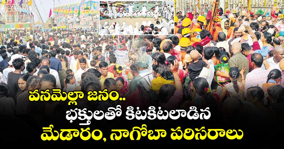 ములుగు జిల్లా మేడారం, ఆదిలాబాద్ జిల్లా నాగోబా జాతర పరిసరాలు శుక్రవారం భక్తులతో కిక్కిరిసిపోయాయి. మేడారం మహాజాతర మరో ఐదు రోజులే ఉండడంతో భక్తులు భారీ సంఖ్యలో తరలివస్తున్నారు. అమ్మవార్లకు చీర, సారె, ఎత్తు బంగారం సమర్పించి ముందస్తు మొక్కులు చెల్లించుకుంటున్నారు.