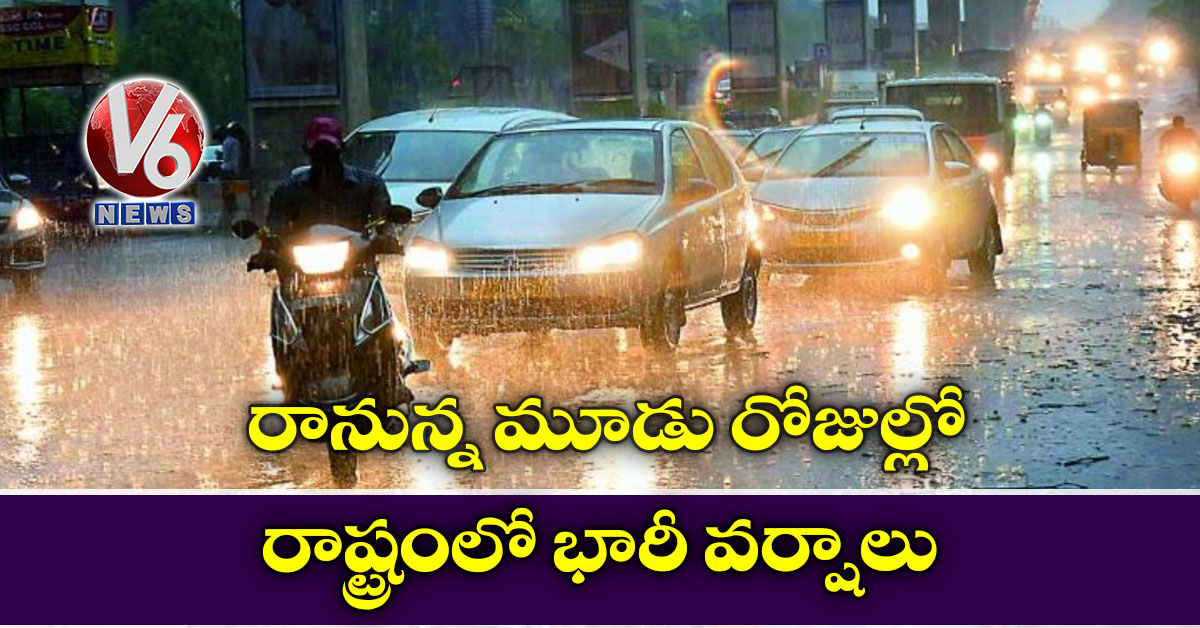 హైదరాబాద్: రాష్ట్రంలో రానున్న మూడు రోజుల పాటు వర్షాలు భారీ నుంచి అతిభారీ వర్షాలు కురిసే అవకాశాలు ఉన్నాయని హైదరాబాద్ వాతావరణ కేంద్రం తెలిపింది. శుక్ర, శనివారాల్లో ఒకటి, రెండుచోట్ల భారీ వర్షాలు కురిసే అవకాశం ఉందని వాతావరణ శాఖ అధికారులు తెలిపారు.