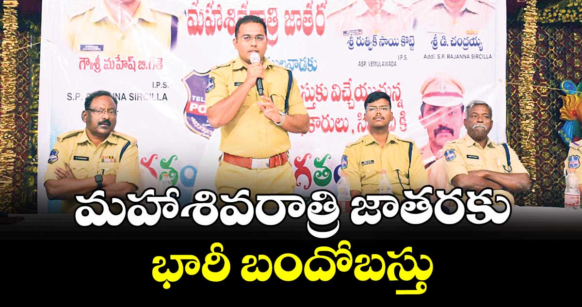 వేములవాడ, వెలుగు: వేములవాడ రాజన్న సన్నిధిలో ఈ నెల 14, 15,16 తేదీల్లో నిర్వహించే మహా శివరాత్రి జాతరకు 1200 మందితో పోలీస్బందోబస్తు ఏర్పాటు చేసినట్లు ఎస్పీ మహేశ్ బి.గీతే తెలిపారు. వివిధ జిల్లాల నుంచి వచ్చిన పోలీసు అధికారులకు, సిబ్బందికి పట్టణంలోని ఓ ఫంక్షన్ హాల్లో విధుల నిర్వహణపై దిశానిర్దేశం చేశారు. వ్యయప్రయాసాలకు ఓర్చి సుదూర ప్రాంతాల నుంచి స్వామి దర్శనానికి వచ్చే భక్తులకు ఎలాంటి అసౌకర్యం కలగకుండా పటిష్ట భద్రత ఏర్పాటు చేసినట్లు చెప్పారు. ఆలయం వద్ద విధుల్లో ఉన్న సిబ్బంది అప్రమత్తంగా ఉండి భక్తులు క్యూ లైన్ పాటించేలా చూడాలని ఆదేశించారు.