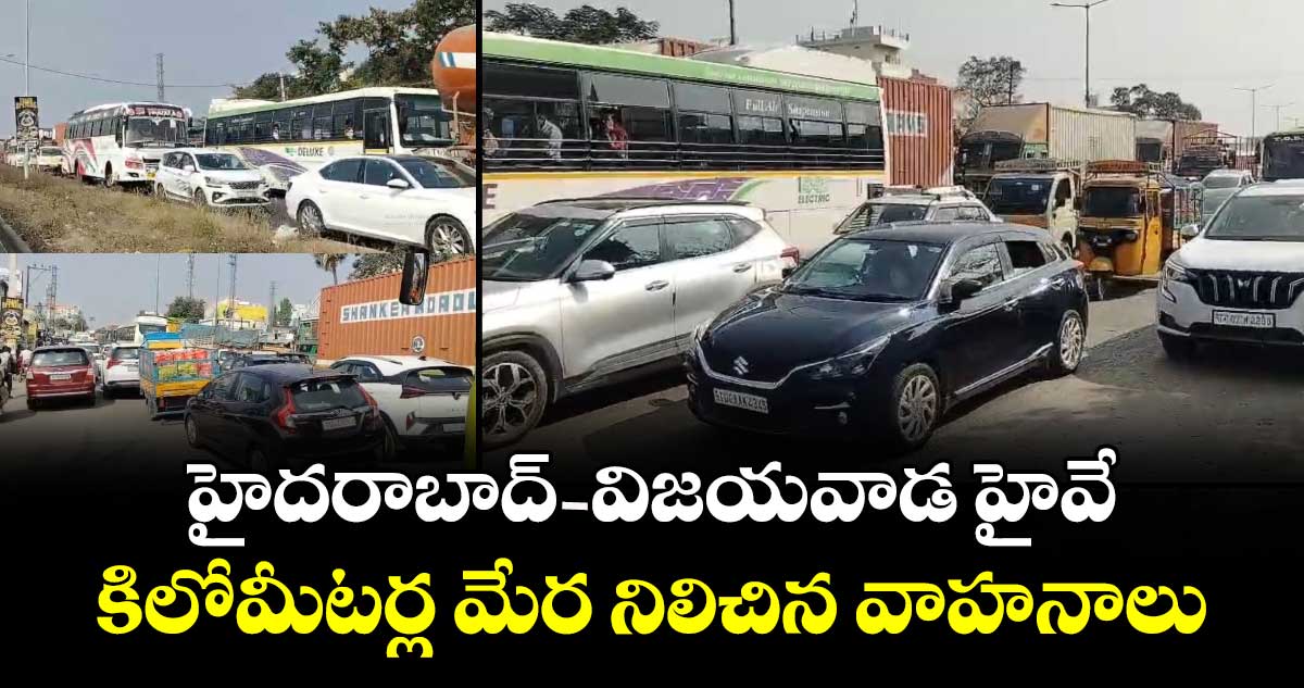 హైదరాబాద్- విజయవాడ రూట్ లో భారీగా ట్రాఫిక్ జామ్ అయ్యింది. క్రిస్మస్ తో పాటు వీకెండ్ కావడం వరుస సెలవులు రావడంతో సొంతూళ్లకు బాటపట్టారు నగర వాసులు. దీంతో విజయవాడ హైవేపై కిలోమీటర్ల మేర వాహనాలు నిలిచిపోయాయి. రోడ్డు విస్తరణతో కొన్ని చోట్ల వాహనదారుల ఇబ్బందులు పడుతున్నారు. ఓఆర్ఆర్ నుంచి విజయవాడ హైవేపై వాహనాలు నెమ్మదిగా కదులుతున్నాయి.