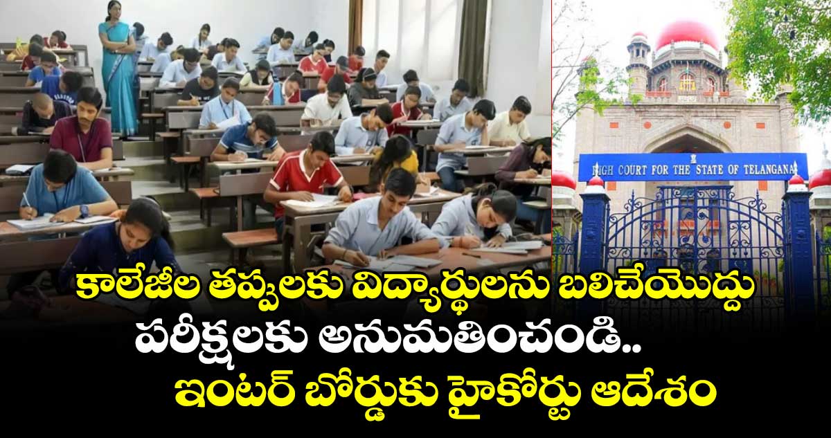 హైదరాబాద్, వెలుగు: కాలేజీల తప్పుకు విద్యార్థులను బలి చేయడం సరికాదని, వారికి పరీక్షలు రాసే అవకాశం కల్పించాలని ఇంటర్ బోర్డుకు హైకోర్టు ఆదేశాలు జారీ చేసింది. విద్యార్థులకు కేవలం తమ చదువులపై ధ్యాస తప్ప కాలేజీలు, ఇంటర్ బోర్డు పనితీరుపై అవగాహన ఉండదని, కాలేజీలకు పరీక్ష ఫీజు చెల్లించినందున కాలేజీ హాల్టిక్కెట్లు అందిస్తుందనే భావనతోనే ఉంటారని తెలిపింది.
