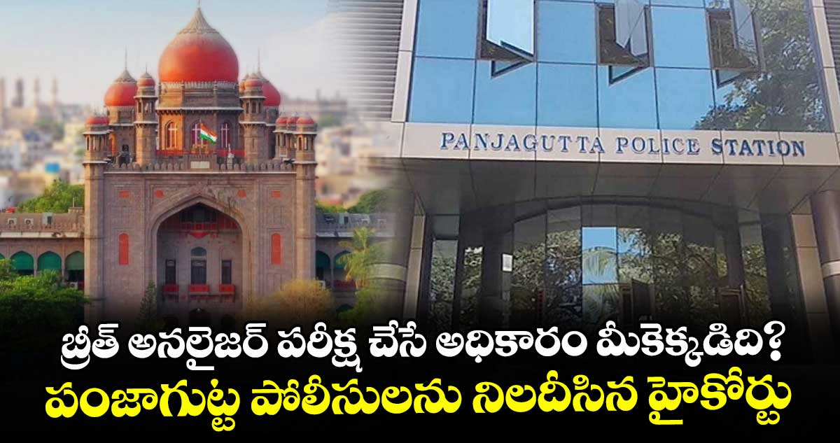 హైదరాబాద్, వెలుగు: పోలీసు స్టేషన్కు వచ్చిన న్యాయవాది సుబ్బారావుకు ఏ అధికారంతో బ్రీత్ అనలైజర్ పరీక్షలు నిర్వహించారని పంజాగుట్ట పోలీసులను హైకోర్టు శుక్రవారం ప్రశ్నించింది. ఈ సంఘటనకు దారితీసిన పరిస్థితులు, బ్రీత్ అనలైజర్ పరీక్షలు నిర్వహించడం తదితరాలను పరిశీలించడానికి పూర్తి వివరాలతో కౌంటర్లు దాఖలు చేయాలని ప్రభుత్వానికి, పోలీసులకు ఆదేశాలు జారీ చేసింది. ఫిర్యాదు గురించి తెలుసుకోవడానికి వెళ్లిన తనపై పంజాగుట్ట పోలీసులు అనుచితంగా ప్రవర్తించారని న్యాయవాది సుబ్బారావు.. హైకోర్టులో పిటిషన్ వేశారు.