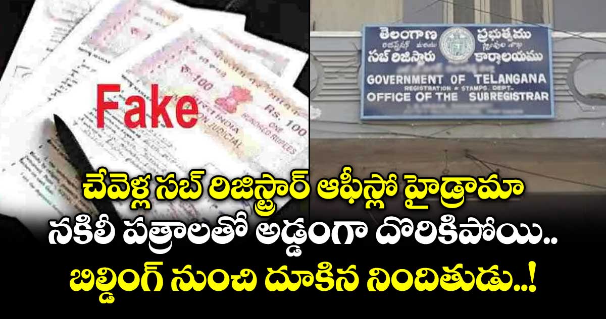 చేవెళ్ల, వెలుగు: చేవెళ్ల సబ్ రిజిస్ట్రార్ ఆఫీస్లో నకిలీ పత్రాలతో భూ రిజిస్ట్రేషన్ చేసేందుకు ప్రయత్నించిన ముఠా గుట్టురట్టు కాగా, అందులో ఓ నిందితుడు భవనం నుంచి దూకి ఆత్మహత్యాయత్నానికి పాల్పడటం కలకలం రేపింది. సీఐ భూపాల్ శ్రీధర్ వివరాల ప్రకారం.. హైదరాబాద్కు చెందిన అనిల్ దుబే తన భార్య అమృత పేరుతో 2006లో చేవెళ్లలో 300 గజాల ప్లాటు కొనుగోలు చేశారు. ఈ భూమిపై నగరానికి చెందిన తయ్యబ్ ఉద్దీన్ అనే వ్యక్తి నకిలీ పత్రాలు సృష్టించాడు.