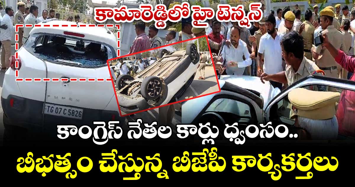 కామారెడ్డిలో హైటెన్షన్ కొనసాగుతోంది. ప్రభుత్వ డిగ్రీ కాలేజీ భూములు, అరోరా కాలేజీ భూములు, శిశు మందిర్ పాఠశాల విషయంలో కాంగ్రెస్, బీజేపీ నేతలు సవాళ్లు, ప్రతిసవాళ్లు విసురుకున్న క్రమంలో ఉద్రిక్తత నెలకొంది. ఈ క్రమంలో చర్చకు సిద్దమంటూ కాంగ్రెస్ నేతలు బీజేపీ ఎమ్మెల్యే వెంకటరమణారెడ్డి క్యాంపు ఆఫీసు దగ్గరికి చేరుకున్న క్రమంలో తీవ్ర ఉద్రిక్తత చోటు చేసుకుంది. కాంగ్రెస్, బీజేపీ నేతల మధ్య వాగ్వాదం చోటు చేసుకుంది. కాంగ్రెస్ నేత మహేందర్ రెడ్డి కారును ధ్వంసం చేశారు బీజేపీ కార్యకర్తలు.