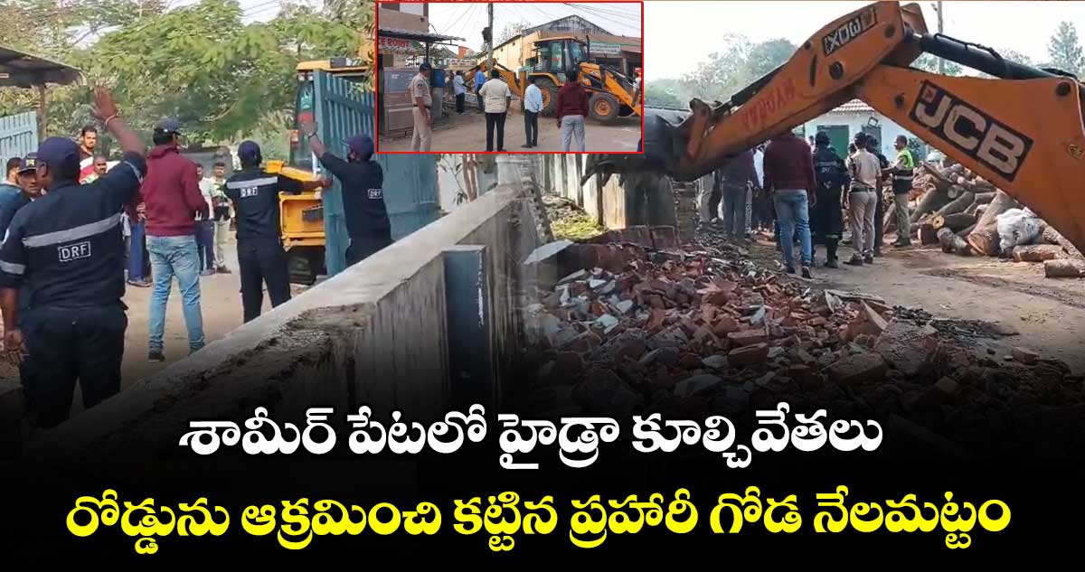 హైదరాబాద్ నగరంలో అక్రమ నిర్మాణాలపై హైడ్రా కొరడా ఝుళిపిస్తోంది. ప్రభుత్వ భూములను ఆక్రమించి నిర్మించిన అక్రమ నిర్మాణాలను తొలగిస్తోంది. ఇప్పటీకే సిటీలోని అనేక చోట్ల అక్రమ నిర్మాణాలను కూల్చి ప్రభుత్వ భూములను కాపాడింది. తాజాగా గురువారం (జనవరి 22) మేడ్చల్ పరిధిలోని శామీర్ పేటలో రోడ్డు ఆక్రమించి నిర్మించిన నిర్మాణాలను తొలగించింది.