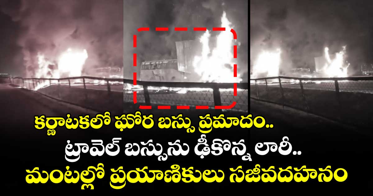 ఘోర బస్సు ప్రమాదం..అర్థరాత్రి ఢీకొన్న బస్సు, లారీ.. ఒక్కసారిగా చెలరేగిన మంటలు.. ప్రయాణికులు హాహాకారాలు.. మంటల్లో ప్రయాణికులు సజీవం దహనం.. కర్నూల్ బస్సు ప్రమాద ఘటన మరువక ముందే మరో ఘోర ప్రమాదం..