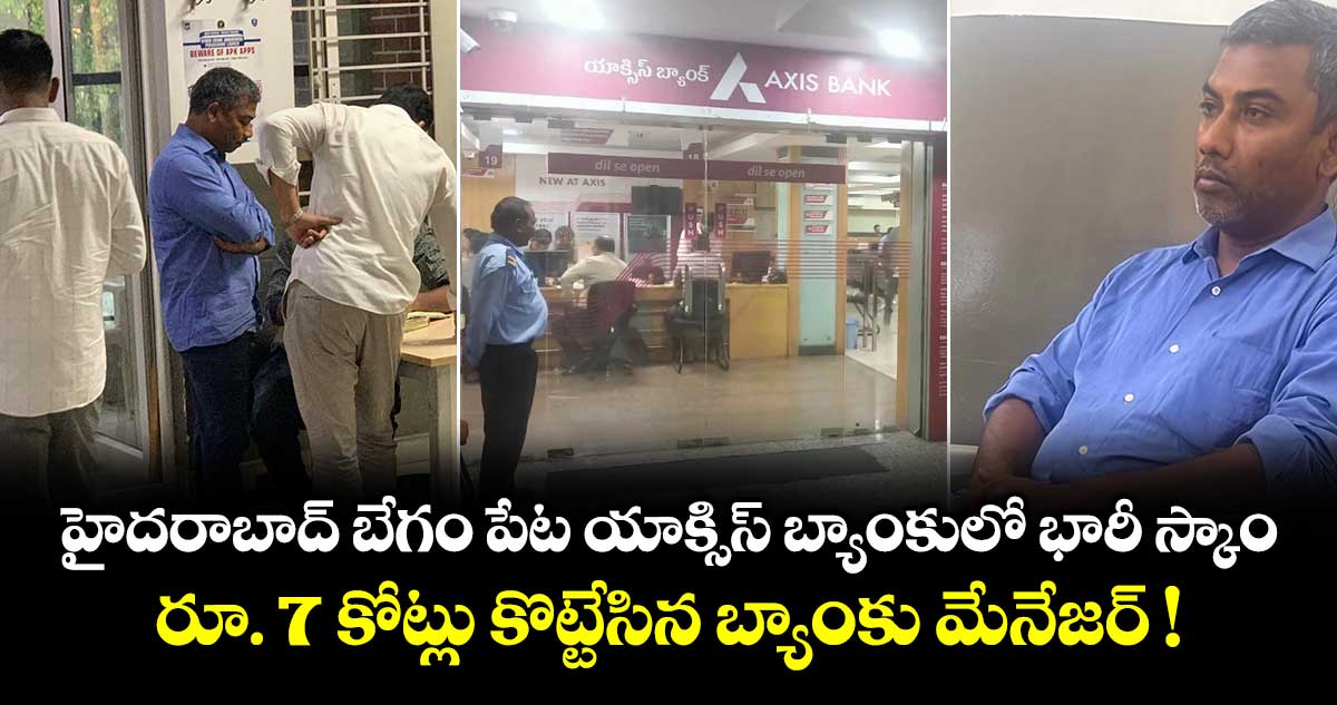 హైదరాబాద్: హైదరాబాద్ బేగం పేట యాక్సిస్ బ్యాంకులో భారీ స్కాం వెలుగుచూసింది. బ్యాంకు మేనేజర్ వెంకట రమణ 7 కోట్ల రూపాయలు కొట్టేసిన ఘటన బ్యాంకు సిబ్బందిని విస్తుపోయేలా చేసింది. ఈ ఘటన ఆలస్యంగా వెలుగులోకి వచ్చింది. ఆస్ట్రేలియాకి చెందిన ఓ ఎన్ఆర్ఐ అకౌంట్ నుంచి సదరు బ్యాంకు మేనేజర్ వెంకట రమణ 7 కోట్ల రూపాయలు కొట్టేశాడు. చెక్ల సాయంతో ఎన్ఆర్ఐ సంతకాన్ని ఫోర్జరీ చేసి బ్యాంకు మేనేజర్ డబ్బులు కాజేశాడు. 41 విడతల్లో నిందితుడు ఏడు కోట్ల రూపాయలు కాజేసిండని విచారణలో వెల్లడైంది.