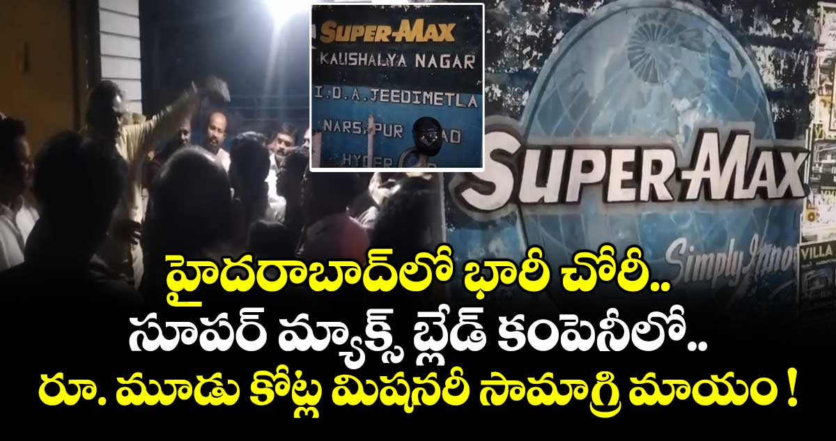 హైదరాబాద్ లో భారీ చోరీ జరిగింది. జీతాలివ్వలేక మూతపడిన సూపర్ మ్యాక్స్ బ్లేడ్ కంపెనీలో దాదాపు మూడు కోట్ల రూపాయల విలువైన సామాగ్రి మాయం అయ్యింది. కుత్బుల్లాపూర్ పరిధిలోని జీడిమెట్ల పారిశ్రామిక వాడలో ఈ చోరీ జరిగింది. మిషనరీతో పాటు ఇతర సామాగ్రి గురైనట్లు కంపెనీ ప్రతినిధులు తెలిపారు.