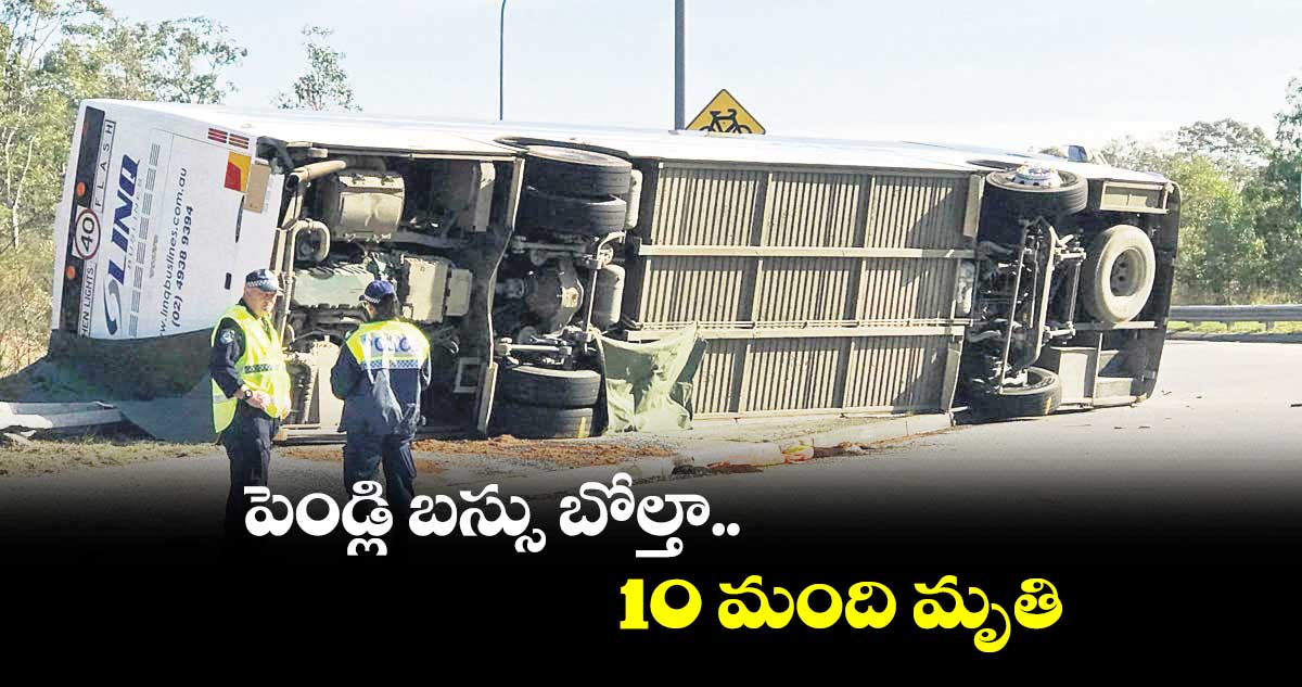 కాన్బెర్రా: ఆస్ట్రేలియాలోని న్యూ సౌత్ వేల్స్ రాష్ట్రంలో ఆదివారం రాత్రి ఘోర ప్రమాదం జరిగింది. హంటర్ వ్యాలీలోని గ్రెటా సిటీలో ఉన్న వైన్ కంట్రీ డ్రైవ్ ప్రాంతంలో ఓ పెండ్లి బస్సు బోల్తా పడింది. ఈ ప్రమాదంలో 10 మంది చనిపోయినట్లు ఆస్ట్రేలియా పోలీసులు సోమవారం వెల్లడించారు. మరో 25 మందికి గాయాలయ్యాయని తెలిపారు. గాయపడినవారిని హెలికాప్టర్, రోడ్డు మార్గం ద్వారా ఆస్పత్రికి తరలించి ట్రీట్ మెంట్ అందిస్తున్నట్లు చెప్పారు. సమీపంలోని వైన్ ఎస్టేట్లో పెండ్లి రిసెప్షన్ జరిగిందని..అది ముగిసిన తర్వాత బస కోసం గెస్టులను బస్సులో సింగిల్టన్ సిటీకి పంపారని వివరించారు. రాత్రి సమయం కావడంతో రోడ్డును భారీ పొగమంచు కప్పివేసిందని.. వేగంగా వెళుతున్న బస్సు మూలమలుపు వద్ద బోల్తాపడిందన్నారు.