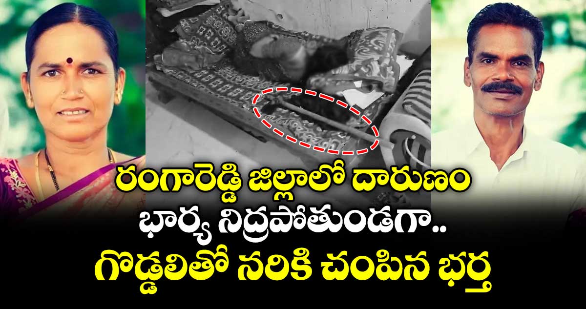 మంచాల: రంగారెడ్డి జిల్లా మంచాల మండలం నోముల గ్రామంలో దారుణం జరిగింది. గ్రామానికి చెందిన బాబు అనే వ్యక్తి భార్యను గొడ్డలితో అతి కిరాతకంగా హతమార్చిన ఘటనతో గ్రామస్తులు ఉలిక్కిపడ్డారు. హత్య చేసి మంచంపై గొడ్డలి వదిలేసి హంతకుడు పారిపోయాడు. చుట్టుపక్కల వారు చూసి పోలీసులకు సమాచారం అందించారు. మంచాలలోని పరిధిలోని నోముల గ్రామంలో ఇంట్లో నిద్రిస్తున్న అమృతను ఆమె భర్త బాబు గొడ్డలితో నరికి చంపాడు.