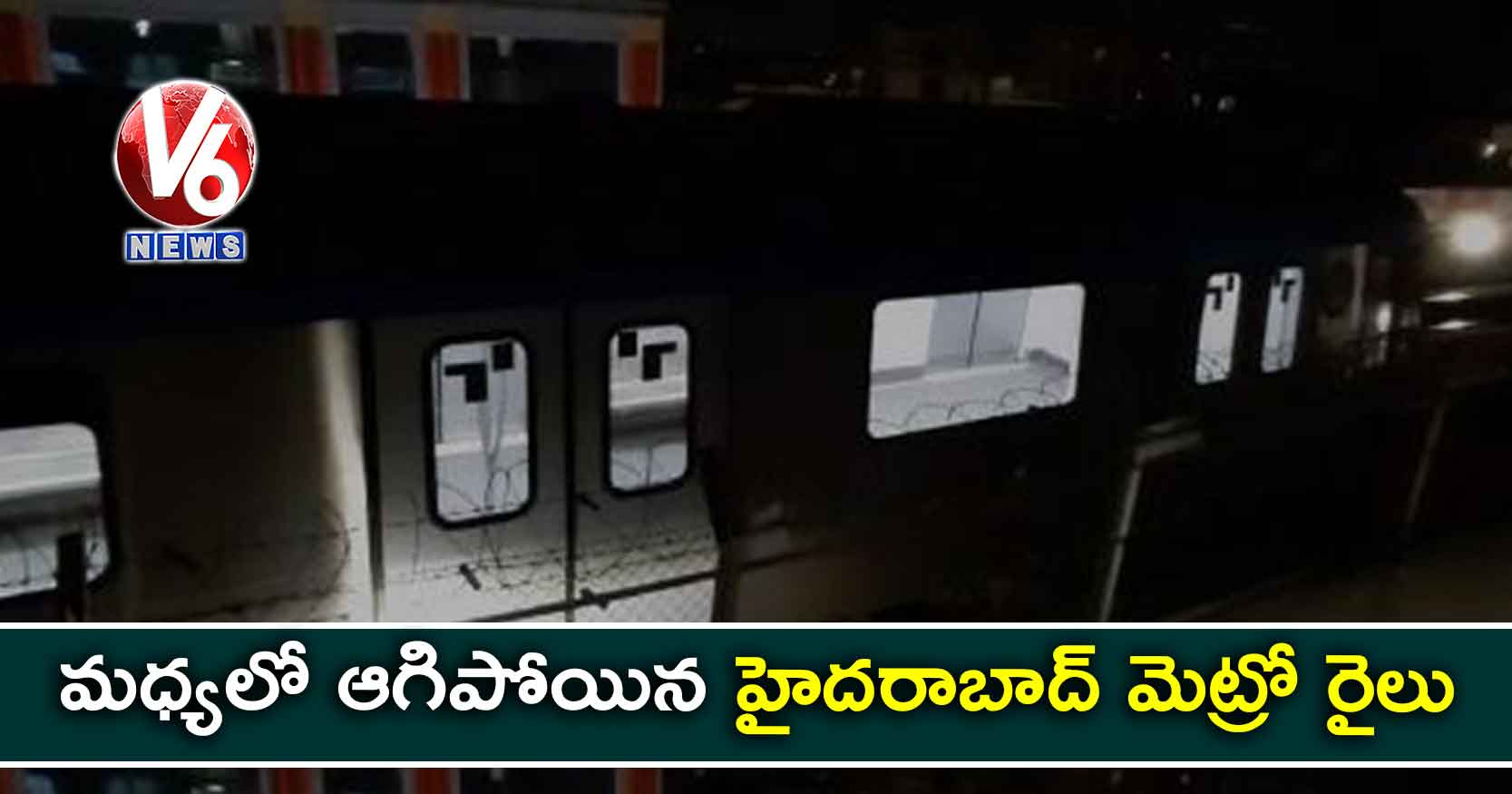 హైదరాబాద్ మెట్రో రైలు ఆకస్మాత్తుగా ఆగిపోయింది. నాగోల్ నుంచి హైటెక్ సిటీకి వెళ్తున్న మెట్రోరైలు అమీర్ పేట స్టేషన్ పరిధిలో పిల్లర్ నెంబర్ 1449వద్ద నిలిచిపోయింది. ఒక్కసారి పెద్దగా శబ్ధం రావడంతో రైలు ఆగిపోయింది. దీంతో ప్రయాణికులు ఒక్కసారిగా భయాందోళనకు గురయ్యారు. ప్రయాణికులను అక్కడి స్టేషన్లో దించేశారు అధికారులు.