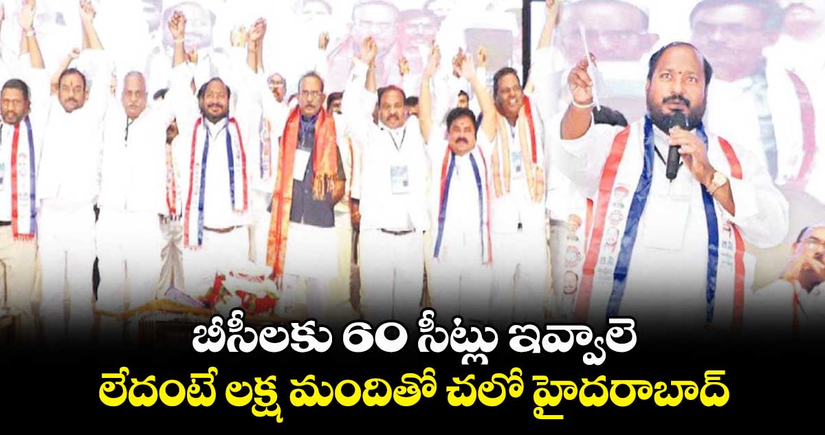 హైదరాబాద్: వచ్చే అసెంబ్లీ ఎన్నికల్లో బీసీలకు 60 సీట్లు కేటాయించాలని, లేదంటే లక్ష మందితో చలో హైదరాబాద్ కార్యక్రమాన్ని చేపడతామని బీసీ సంఘాల నేతలు హెచ్చరించారు. ఆగస్టులోగా రాజకీయ పార్టీలు తమ వైఖరిని వెల్లడించాలని డిమాండ్ చేశారు. బీసీ సంక్షేమ సంఘం ఆధ్వర్యంలో ఎల్బీ నగర్ లోని కేబీఆర్ కన్వేన్షన్ హాల్ లో బీసీల ప్లీనరీ సమావేశాన్ని ఇవాళ నిర్వహించారు. ఈ సందర్బంగా బీసీ సంక్షేమ సంఘం అధ్యక్షుడు జాజుల శ్రీనివాస్ గౌడ్ మాట్లాడుతూ.. దేశంలో చాలా మంది బీసీలు ముఖ్యమంత్రులుగా విజయవంతమైన పాలన అందించారని చెప్పారు. ఎంబీసీ కార్పొరేషన్ మాజీ చైర్మన్ తాడూరి శ్రీనివాస్ మాట్లాడుతూ.. బీసీలకు ఉన్న చరిత్ర మిగతా కులాలకు లేదన్నారు. వెనుకబడిన కులాల వారు ప్రజాప్రతినిధులు అయినప్పుడే రాజ్యాంగం అమలవుతున్నట్టు భావిస్తామని అన్నారు.