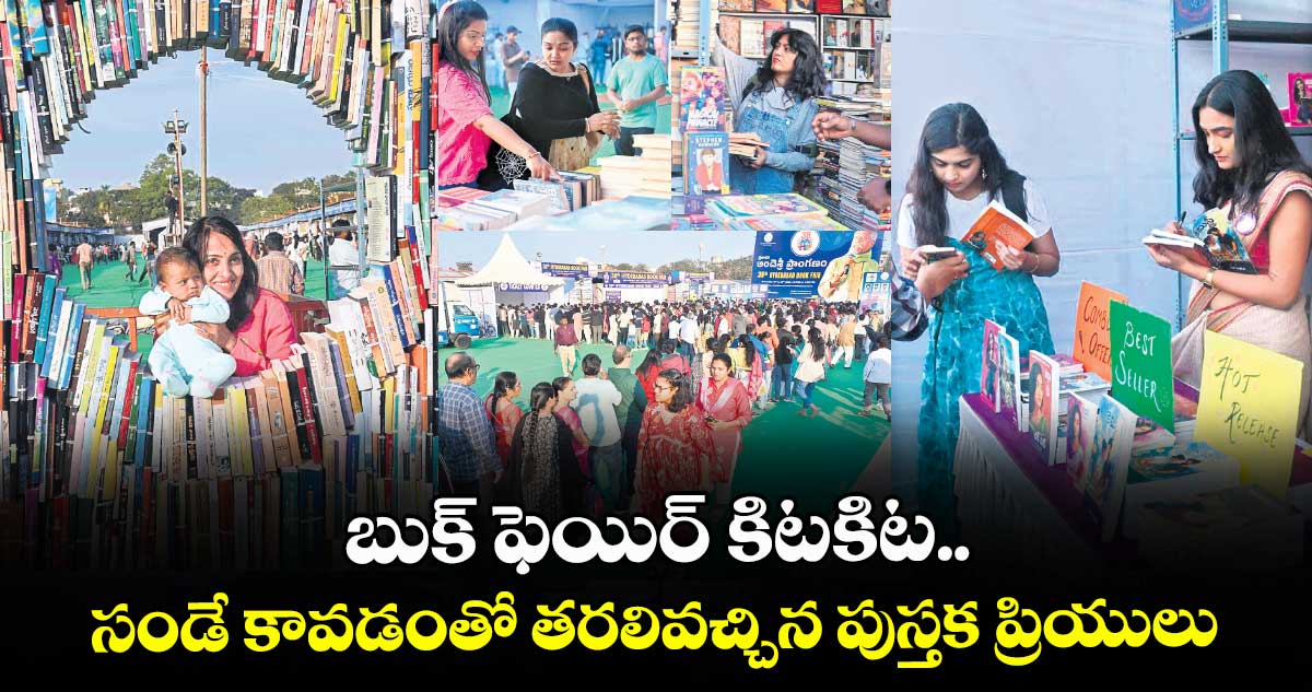 హైదరాబాద్ బుక్ ఫెయిర్ పుస్తక ప్రియులతో కిటకిటలాడింది. ఆదివారం సెలవు కావడంతో తండోపతండాలుగా తరలివచ్చారు. పిల్లలు, మహిళలు, యువతులు , పెద్దలు ఇలా అన్ని వర్గాల వారు తమకు నచ్చిన పుస్తకాలను కొనుగోలు చేశారు. మధ్యాహ్నం నుంచి రాత్రి వరకు ఏ స్టాల్చూసినా కిక్కిరిసిపోయి కనిపించింది. పుస్తకాలతో ఏర్పాటు చేసిన సెల్ఫీ పాయింట్ వద్ద పలువురు ఫొటోలు దిగుతూ సందడి చేశారు.