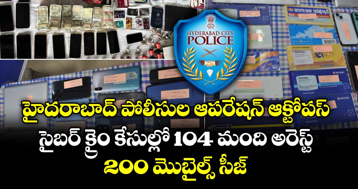 ఆక్టోపస్ పేరుతో హైదరాబాద్ సైబర్ క్రైమ్ పోలీసులు మొత్తం 16 రాష్ట్రాల్లో 104 మంది సైబర్ నేరగాళ్లని అరెస్ట్ చేశారు. నిందితుల్లో బ్యాంకు అధికారులు సైతం ఉన్నారు. వారి దగ్గరి నుంచి రూ.36 లక్షల నగదు, 200 లకు పైగా మొబైల్స్ స్వాధీనం చేసుకున్నారు. నిందితులపై దేశవ్యాప్తంగా 1,055 కేసులు ఉన్నట్లు గుర్తించారు పోలీసులు. ఇప్పటివరకు వీరు రూ.127 కోట్లకు పైగా సైబర్ మోసాలకు పాల్పడ్డట్లు తెలిపారు.