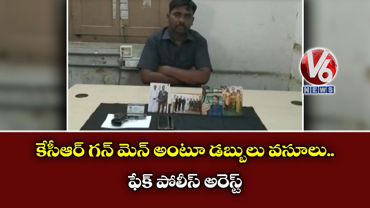 హైదరాబాద్ : సీఎం కేసీఆర్ గన్మెన్ అంటూ డబ్బులు వసూలు చేస్తున్న ఫేక్ పోలీసును అరెస్ట్ చేశారు వెస్ట్ జోన్ టాస్క్ఫోర్స్ పోలీసులు. హైదరాబాద్ కి చెందిన సంతోష్ అనే వ్యక్తి ఫేక్ ఐడీ కార్డుతో కొన్ని రోజులుగా ఎస్సైగా చలామణి అవుతున్నాడు. ప్రస్తుతం తాను సీఎం కేసీఆర్ వద్ద గన్ మెన్ గా పని చేస్తున్నాని చెప్పకుంటూ అమాయక ప్రజల నుంచి డబ్బులు వసూలు చేశాడు. జౌట్ సోర్సింగ్ ఉద్యోగాలు ఇప్పిస్తానని చెబూతూ నిరుద్యోగ యువత దగ్గర పెద్ద ఎత్తున డబ్బులు వసూలు చేశాడు. టాస్క్ పోర్స్ పోలీసులకు సమాచారం అందడంతో సంతోష్ ను రెడ్ హ్యాండెడ్ గా పట్టుకున్నారు. అతని నుంచి నకిలీ తుపాకీ, ఫేక్ ఐడీ కార్డులను స్వాధీనం చేసుకున్నారు.
