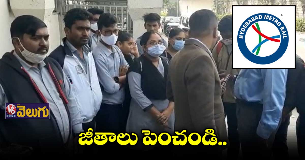 తమ వేతనాలు పెంచాలంటూ మంగళవారం కూడా మెట్రో రైల్ టికెటింగ్ సిబ్బంది అమీర్ పేట్ మెట్రోస్టేషన్ లో నిరసన చేపట్టారు. తమకు జీతాలు పెంచాలని మెట్రో ప్రాజెక్ట్ లో పని చేస్తున్న దాదాపు 300 మంది ఉద్యోగులు డిమాండ్ చేశారు. మెట్రోస్టేషన్స్ లో టికెటింగ్, మెయింటెనెన్స్ విభాగాల్లో పని చేస్తున్న ఉద్యోగులు 5 ఏళ్లుగా జీతాలు పెంచడం లేదంటూ నిరసన వ్యక్తం చేశారు. చాలీచాలని జీతాలతో బతుకు కష్టంగా మారిందని అందోళన వ్యక్తం చేశారు. ఉద్యోగాల విషయంలోనూ తమకు చాలా సమస్యలు ఉన్నాయని ఆరోపించారు. ఒకరు ఉద్యోగం చేస్తుంటే మరో రిలీవర్ సరైన సమయానికి రాకపోయినా పట్టించుకోవడం లేదని ఆవేదన వ్యక్తం చేశారు. కనీసం భోజనం చేయడానికి కూడా సమయం ఇవ్వడం లేదన్నారు.