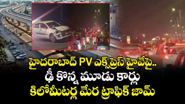 Read Moreహైదరాబాద్ PV ఎక్స్ప్రెస్ హైవేపై ఢీ కొన్న మూడు కార్లు.. కిలోమీటర్ల మేర ట్రాఫిక్ జామ్
