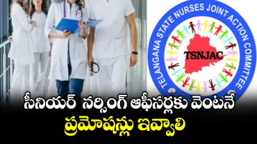 సీనియర్ నర్సింగ్ ఆఫీసర్లకు వెంటనే ప్రమోషన్లు ఇవ్వాలి : జేఏసీ