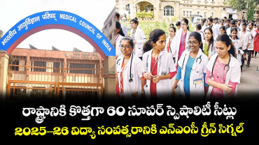 Read Moreరాష్ట్రానికి కొత్తగా 60 సూపర్ స్పెషాలిటీ సీట్లు.. 2025-26 విద్యా సంవత్సరానికి ఎన్ఎంసీ గ్రీన్ సిగ్నల్