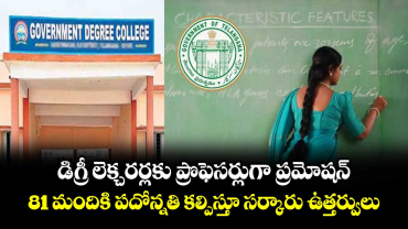 Read Moreడిగ్రీ లెక్చరర్లకు ప్రొఫెసర్లుగా ప్రమోషన్.. 81 మందికి పదోన్నతి కల్పిస్తూ సర్కారు ఉత్తర్వులు