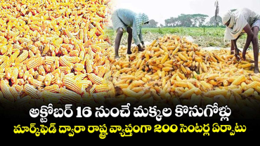 Read Moreఅక్టోబర్ 16 నుంచే మక్కల కొనుగోళ్లు మార్క్ఫెడ్ ద్వారా రాష్ట్ర వ్యాప్తంగా 200 సెంటర్ల ఏర్పాటు