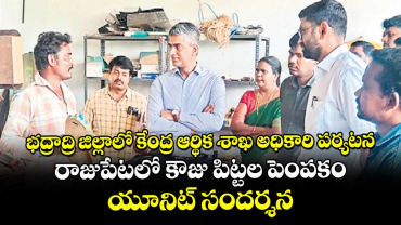 Read Moreభద్రాద్రి జిల్లాలో కేంద్ర ఆర్థిక శాఖ అధికారి పర్యటన ..రాజుపేటలో కౌజు పిట్టల పెంపకం యూనిట్ సందర్శన