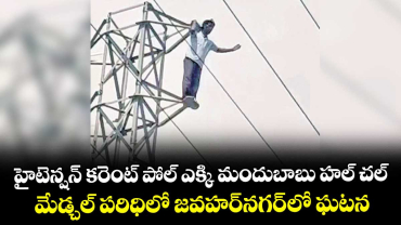 మేడ్చల్ కలెక్టరేట్, వెలుగు: హైటెన్షన్ కరెంట్ పోల్ ఎక్కి మందుబాబు హల్ చల్ చేశాడు. హైదరాబాద్ జవహర్ నగర్ కార్పొరేషన్ పరిధి వికలాంగుల కా