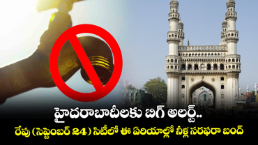 Read Moreహైదరాబాదీలకు బిగ్ అలర్ట్.. రేపు (సెప్టెంబర్ 24) సిటీలో ఈ ఏరియాల్లో నీళ్ల సరఫరా బంద్