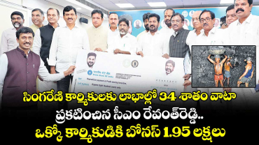 Read Moreసింగరేణి కార్మికులకు లాభాల్లో 34 శాతం వాటా.. ప్రకటించిన సీఎం రేవంత్రెడ్డి.. ఒక్కో కార్మికుడికి బోనస్1.95 లక్షలు