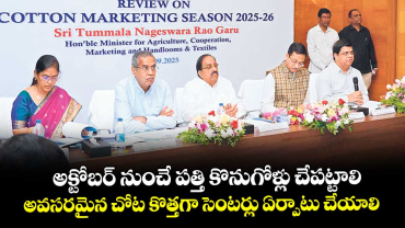 Read Moreఅక్టోబర్ నుంచే పత్తి కొనుగోళ్లు చేపట్టాలి..అవసరమైన చోట కొత్తగా సెంటర్లు ఏర్పాటు చేయాలి :మంత్రి తుమ్మల నాగేశ్వరరావు