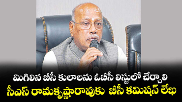 Read Moreమిగిలిన బీసీ కులాలను ఓబీసీ లిస్టులో చేర్చాలి.. సీఎస్ రామకృష్ణారావుకు బీసీ కమిషన్ లేఖ