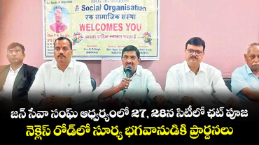 Read Moreజన్ సేవా సంఘ్ ఆధ్వర్యంలో 27, 28న సిటీలో ఛట్ పూజ... నెక్లెస్ రోడ్ లో సూర్య భగవానుడికి ప్రార్దనలు