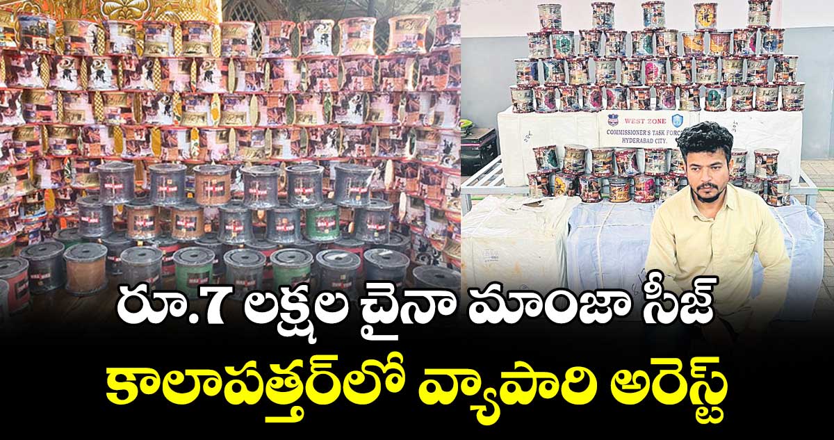 ఓల్డ్సిటీ, వెలుగు: ఓల్డ్సిటీలోని కాలాపత్తర్లో రూ.7 లక్షల చైనా మాంజా పట్టుబడింది. మహ్మద్ షాజైబ్ అలియాస్ అనీస్ (42) కాలాపత్తర్లో నివాసం ఉంటూ స్థానికంగా పతంగుల వ్యాపారం చేస్తున్నాడు. పక్కా సమాచారంతో ఆదివారం అనీస్ దుకాణంపై వెస్ట్ జోన్ టాస్క్ ఫోర్స్ అండ్ సౌత్ వెస్ట్ జోన్ టీమ్స్ అడిషనల్ డిప్యూటీ కమిషనర్ మహ్మద్ ఇక్బాల్ సిద్దిక్, వెస్ట్ జోన్ టాస్క్ ఫోర్స్ ఇన్స్పెక్టర్ యాదేందర్, ఎస్ఐపీ జి. సందీప్ రెడ్డి పర్యవేక్షణలో పోలీసులు దాడి చేశారు.