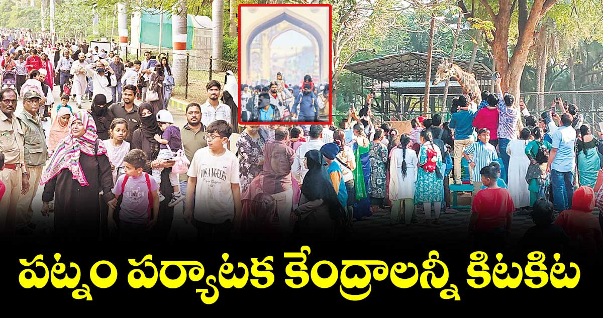 ఆదివారం నెహ్రూ జూ పార్క్ను 25,875 మంది సందర్శించగా, దాదాపు 10 వేల మంది చార్మినార్పైకి ఎక్కి నగర అందాలను తిలకించారు. రద్దీ కారణంగా ఓల్డ్సిటీలోని ఇరుకు రోడ్లతో సందర్శకులకు అనేక కష్టాలు ఎదురయ్యాయి. కిలోమీటర్ వరకు నడిచి వెళ్లాల్సిన పరిస్థితి ఏర్పడింది. ట్రాఫిక్ జామ్, పార్కింగ్ సమస్యలతో సతమతమయ్యారు.