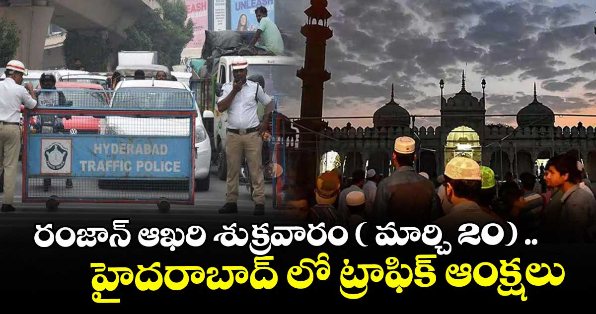 హైదరాబాద్ సిటీ, వెలుగు: రంజాన్ మాసం ఆఖరి శుక్రవారం సందర్భంగా నగరంలోని వివిధ ప్రాంతాల్లో ట్రాఫిక్ పోలీసులు ఆంక్షలు విధించారు. మక్కా మసీదు వద్ద శుక్రవారం నిర్వహించే ప్రత్యేక ప్రార్థనల దృష్ట్యా చార్మినార్ పరిసర ప్రాంతాల్లో ఉదయం 8 గంటల నుంచి సాయంత్రం 4 గంటల వరకు వాహనాల రాకపోకలపై ఆంక్షలు విధిస్తూ ట్రాఫిక్ మళ్లింపులు చేపట్టారు.