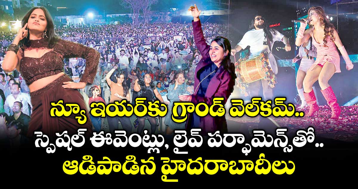 బేగంపేట కంట్రీ క్లబ్ ఆధ్వర్యంలో రసూల్పూరలోని పోలీస్ హాకీ గ్రౌండ్స్లో జరిగిన వేడుకల్లో టాలీవుడ్ నేపథ్య గాయకులు పావని, నందకిషోర్ టీమ్పాడిన పాటలు ఉర్రూతలూగించాయి. ఇంటర్నేషనల్డీజేలు వనీష్, ఎక్స్టసీలు యువతను హుషారెక్కించారు. ఎల్బీనగర్ జీఎస్ఆర్కన్వెన్షన్లో సింగర్సునీత, ఆర్పీ పట్నాయక్ పాటలు ఆకట్టుకున్నాయి. హైటెక్స్లో రామ్మిరియాల జోష్ నింపారు. బిగ్బుల్పబ్లో ఇంటర్నేషన్ డీజే ఆప్టరాల్ షో అలరించింది. హాయ్ల్యాండ్లో రాహుల్ సిప్లిగంజ్లైవ్మ్యూజికల్ఫర్మామెన్స్తో అదరగొట్టారు. ఓపెన్ గ్రౌండ్స్, కన్వెన్షన్ హోటల్స్ లో, హైటెక్స్ ఎరినా గ్రౌండ్స్ లో భారీ న్యూ ఇయర్ ఈవెంట్స్జరిగాయి.